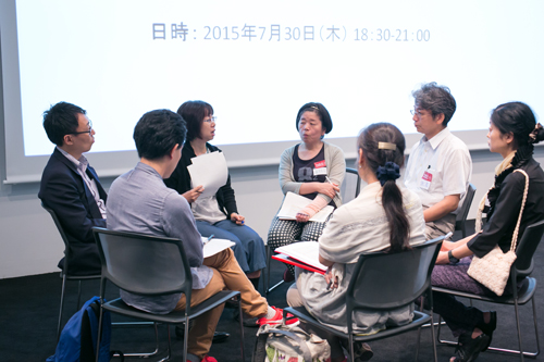 「学校と美術館のためのプログラム」は昨年2014年、森美術館で開催された、子どもをめぐる状況に焦点を当てた展覧会「ゴー・ビトゥイーンズ展:こどもを通して見る世界」の関連プログラムとして始まりました。公立、私立、小中高、コミュニティスクールなどの先生、教育雑誌の出版に関わっていた方など、様々な方にご参加いただき、学校と美術館がお互いに情報交換しながら、どのように子どもたちと一緒に学んでいくことができるかを考える少人数制のディスカッションプログラムです。今回は「ディン・Q・レ展:明日への記憶」について、意見交換を行いました。