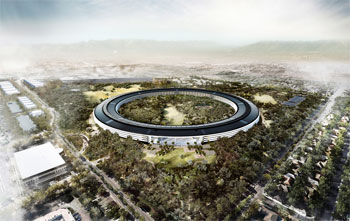 The exhibition also features innovative projects that will shape cities and architecture of the near future, including Apple Campus 2, a piece of sustainable architecture, and lunar habitations made from lunar soil using a robot-operated 3D printer.