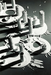 In addition to architecture and urban planning, Metabolism became deeply involved in design and art via the 'environment' keyword. One result of that involvement was the "From Space to Environment" exhibition in 1966. Another example is Osaka Expo '70, which integrated many different genres in events on the 'environment' theme. This section exhibits the works of artist Yamaguchi Katsuhiro, graphic designer Awazu Kiyoshi and others who participated in "From Space to Environment." It also introduces Expo '70 from an urban planning and architectural perspective.