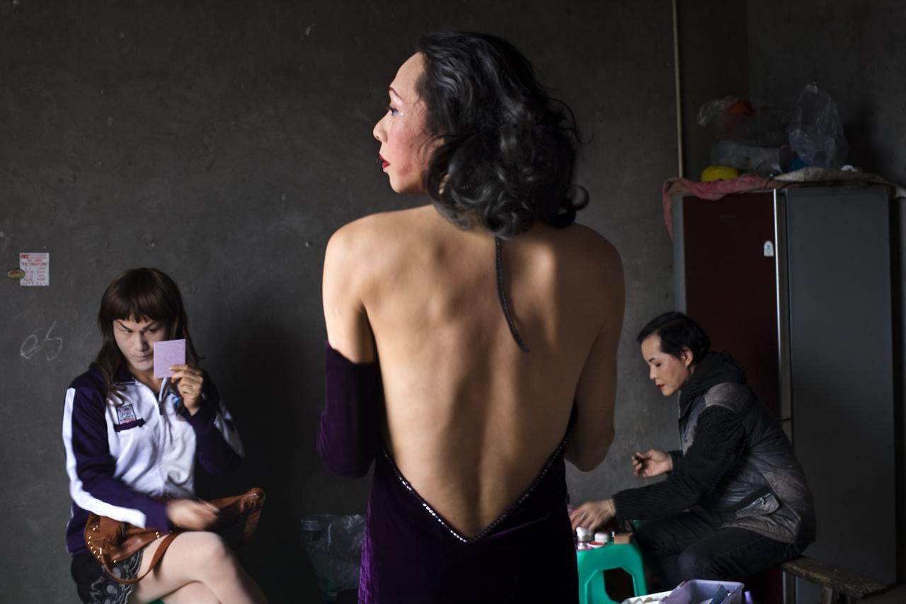 「I and I」シリーズは、中国の急速な経済発展と凄まじい時代の変化の波に翻弄されるドラァグクイーンたちを中心にしたLGBTQを主題にしている。2005年に菊地が北京で出会った社会の片隅で生活するかれらが(*)、数年後には社会に受容され始め本人たちの意識も変わっていく様子、2008年以降に重慶で出会った自らのアイデンティティを易々と誇示する1985年以降生まれの若いドラァグクイーンたちなどが撮影されている。北京、陝西、重慶、四川、河北など、撮影された場所も多様だが、被写体となるドラァグクイーンたちの日常におけるさまざまな瞬間が、近しい者だからこそ撮れる親密さをもって語りかけ、かれらの息遣いとエネルギーを感じることができる。